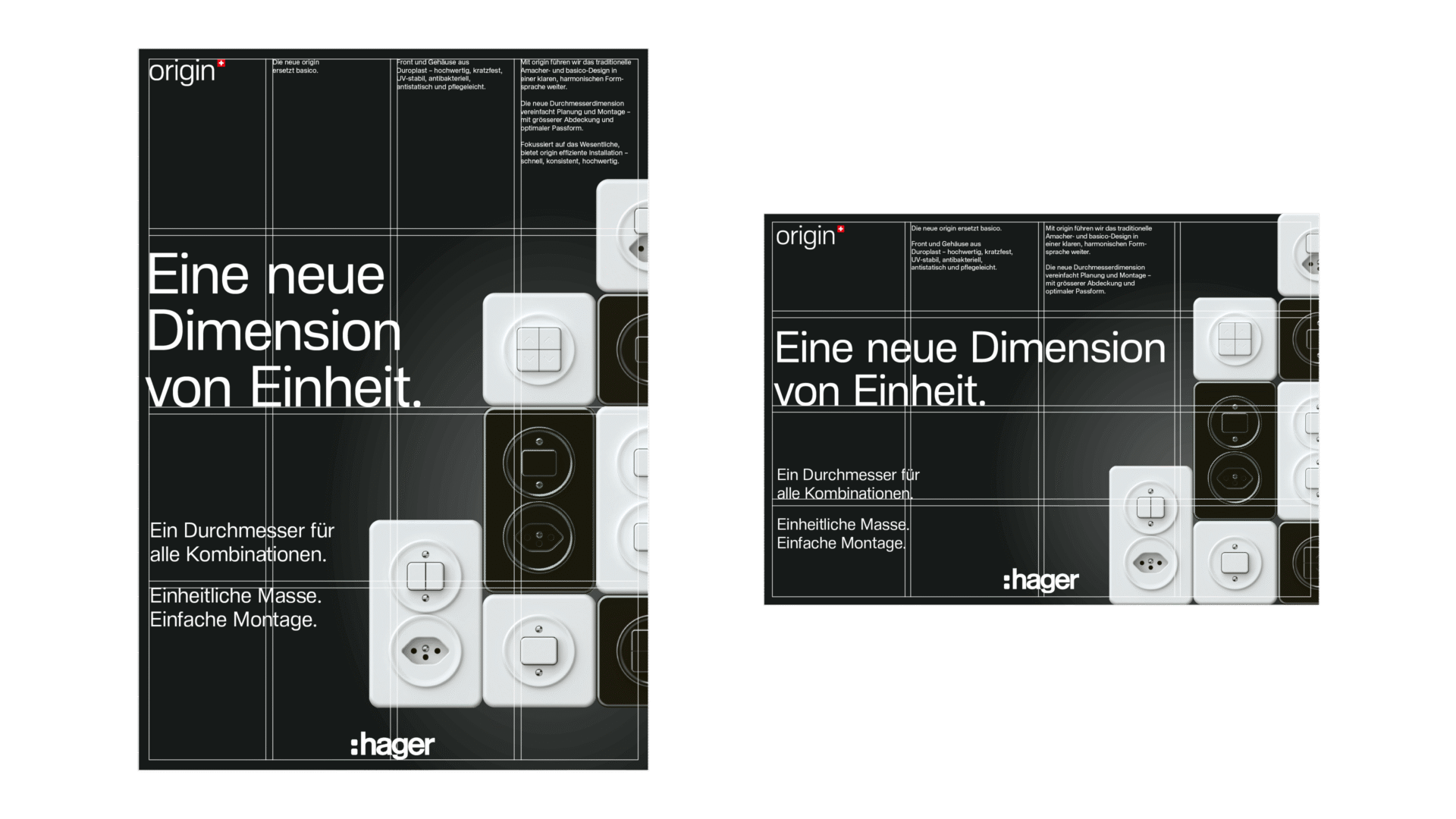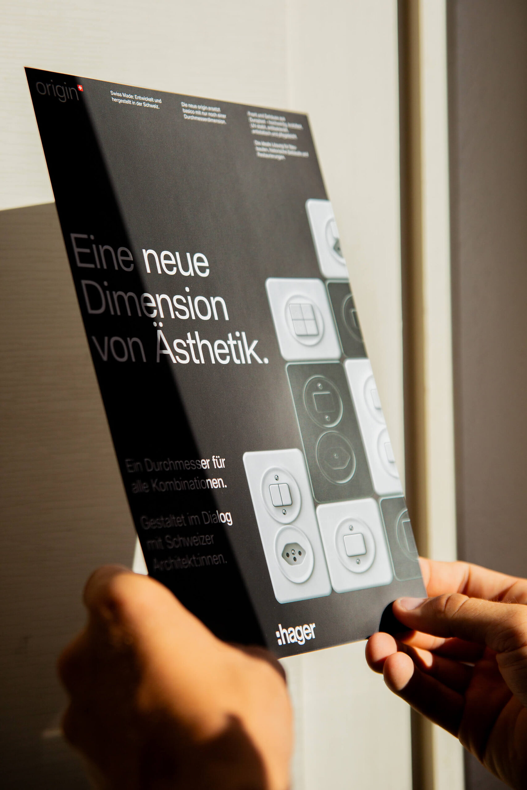 Im Zentrum der Kampagne steht der Fokus auf das Wesentliche: nur noch ein Durchmesser für alle Schalterkombinationen – und damit maximale Gestaltungsfreiheit. Der Name origin, abgeleitet vom Englischen für «Herkunft», verweist auf die Designtradition und zeigt zugleich ihre zeitgemässe Weiterentwicklung.