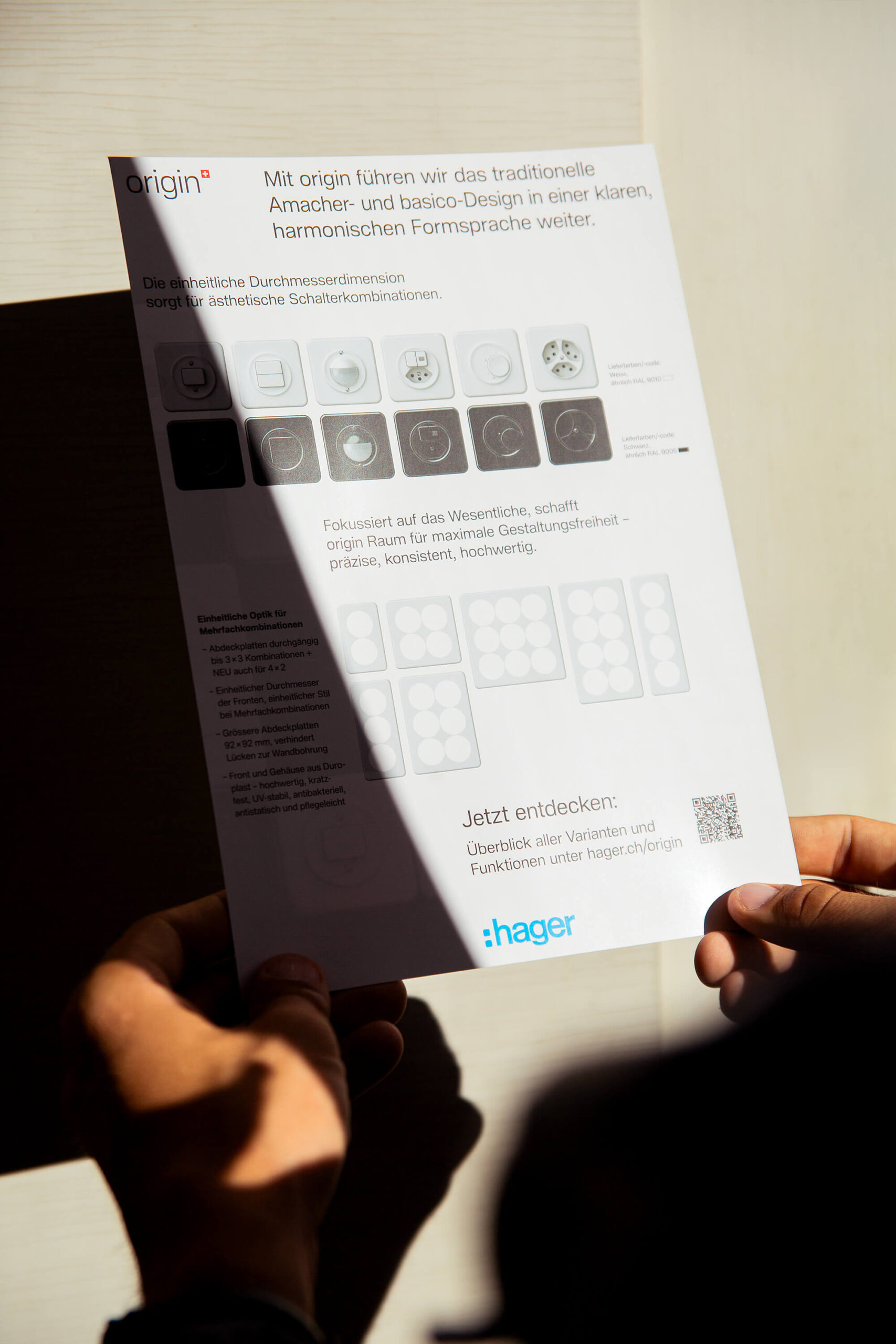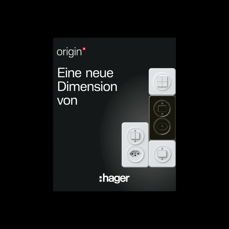 Mit origin führt Hager das traditionelle Amacher- und basico-Design in einer klaren, harmonischen Formsprache weiter. Die einheitliche Dimension sorgt für ästhetische Schalterkombinationen und wurde im Dialog mit Schweizer Architekt:innen entwickelt.