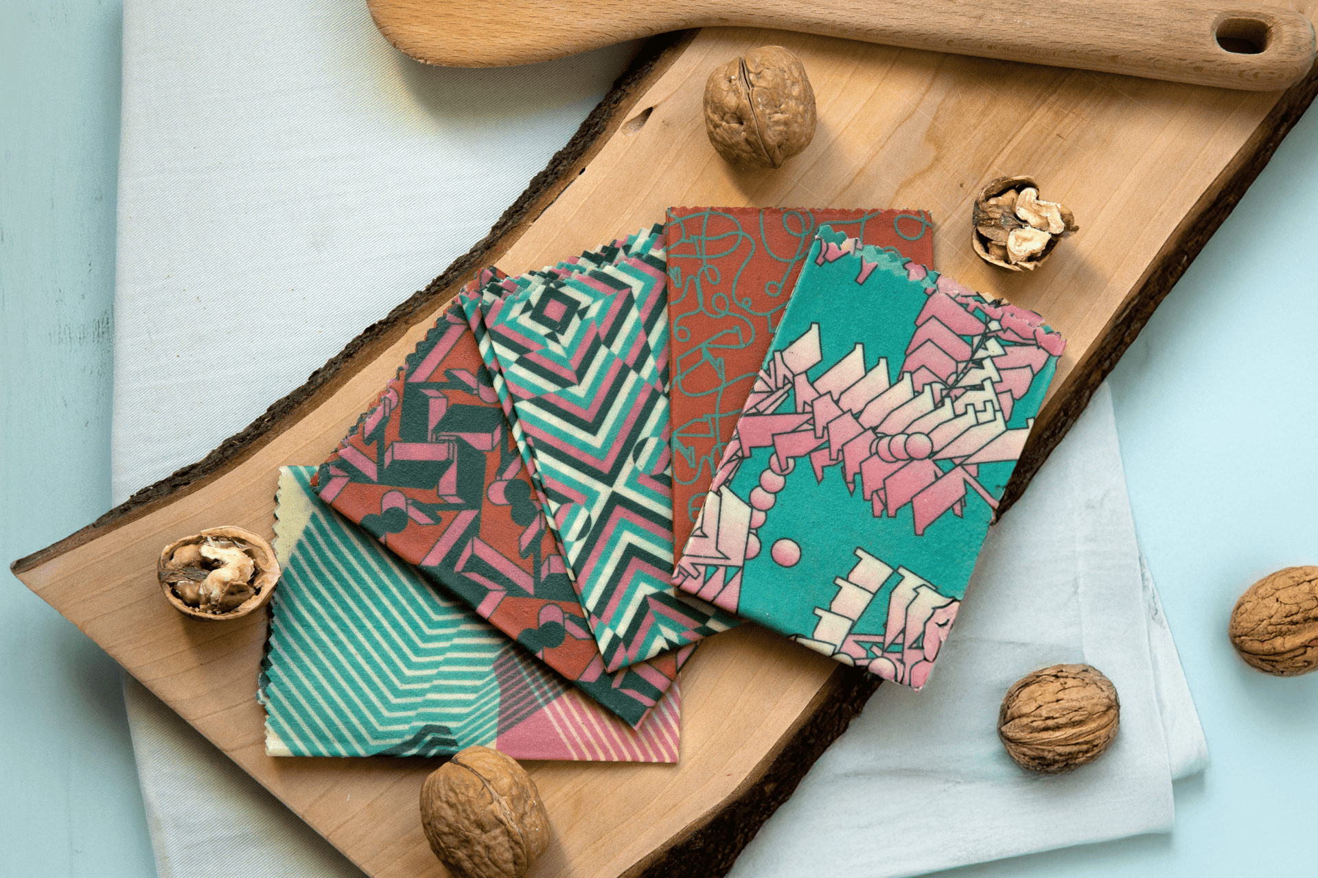 Für den Weihnachtsgruss haben wir uns etwas Spezielles ausgedacht. Damit unsere Kunden ihre übrig gebliebenen Weihnachtsguetzli und die nicht aufgegessene Weihnachtsgans aufbewahren können, haben wir ihnen bunte Bienenwachstücher geschenkt. Sie ersetzen Alu- und Frischhaltefolie und sorgen für weniger Abfall und Foodwaste.
