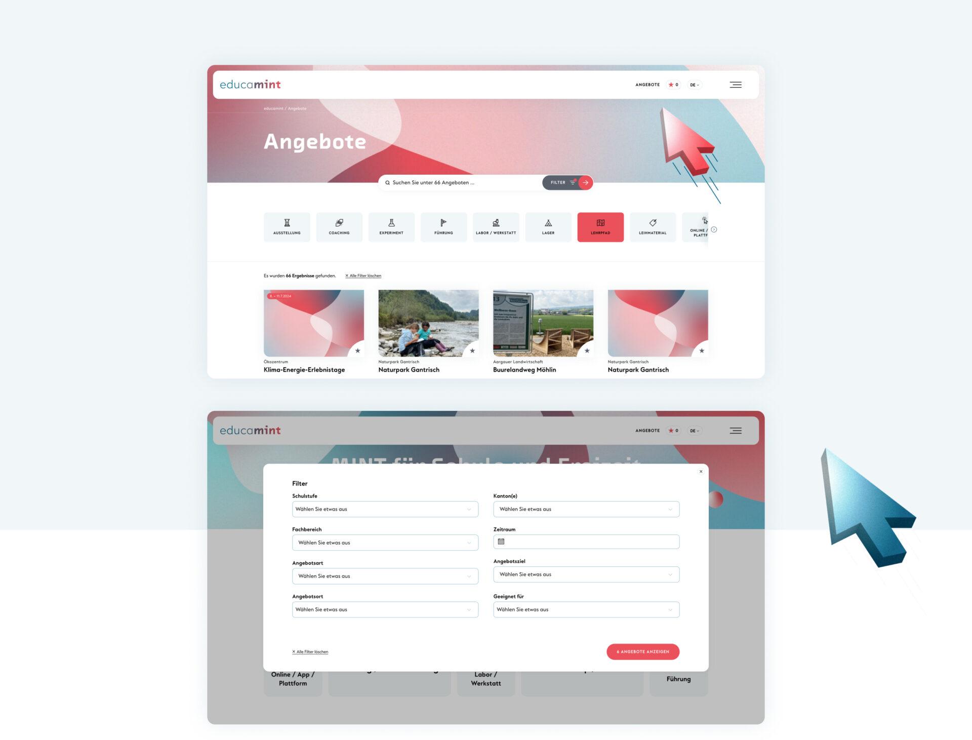 Unser Anspruch an das Endprodukt war es die Komplexität der Datenfülle so herunterbrechen zu können, dass die Bedienung der Plattform für die Userinnen so einfach wie möglich ist. Zugleich soll das Suchergebniss für die suchende Person so zielführend wie nur möglich sein.