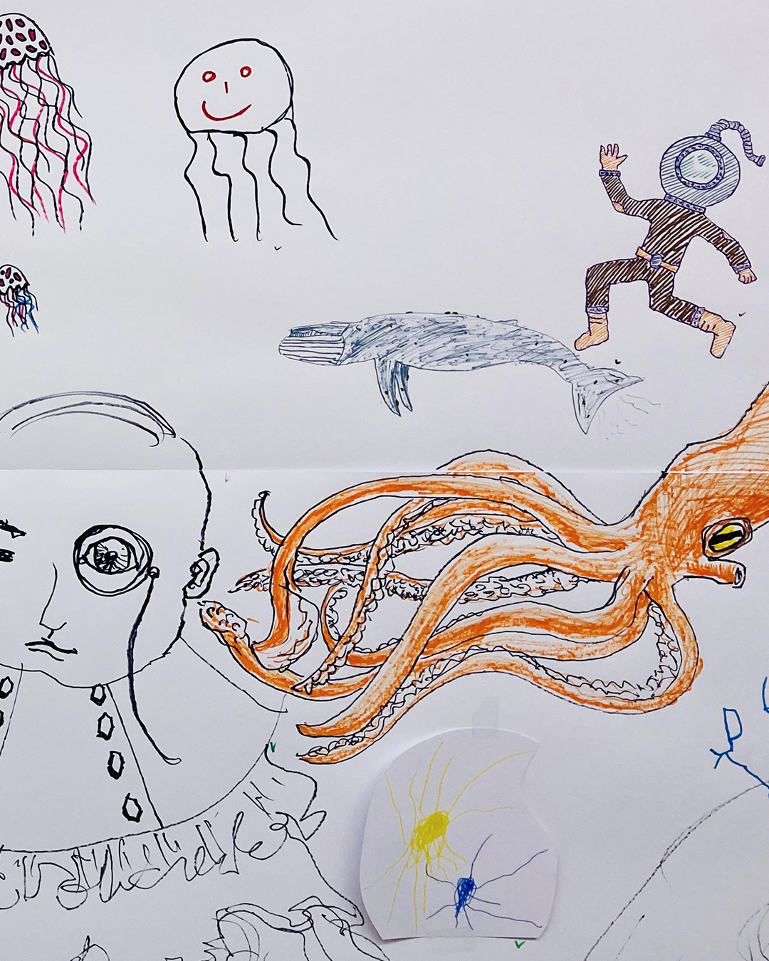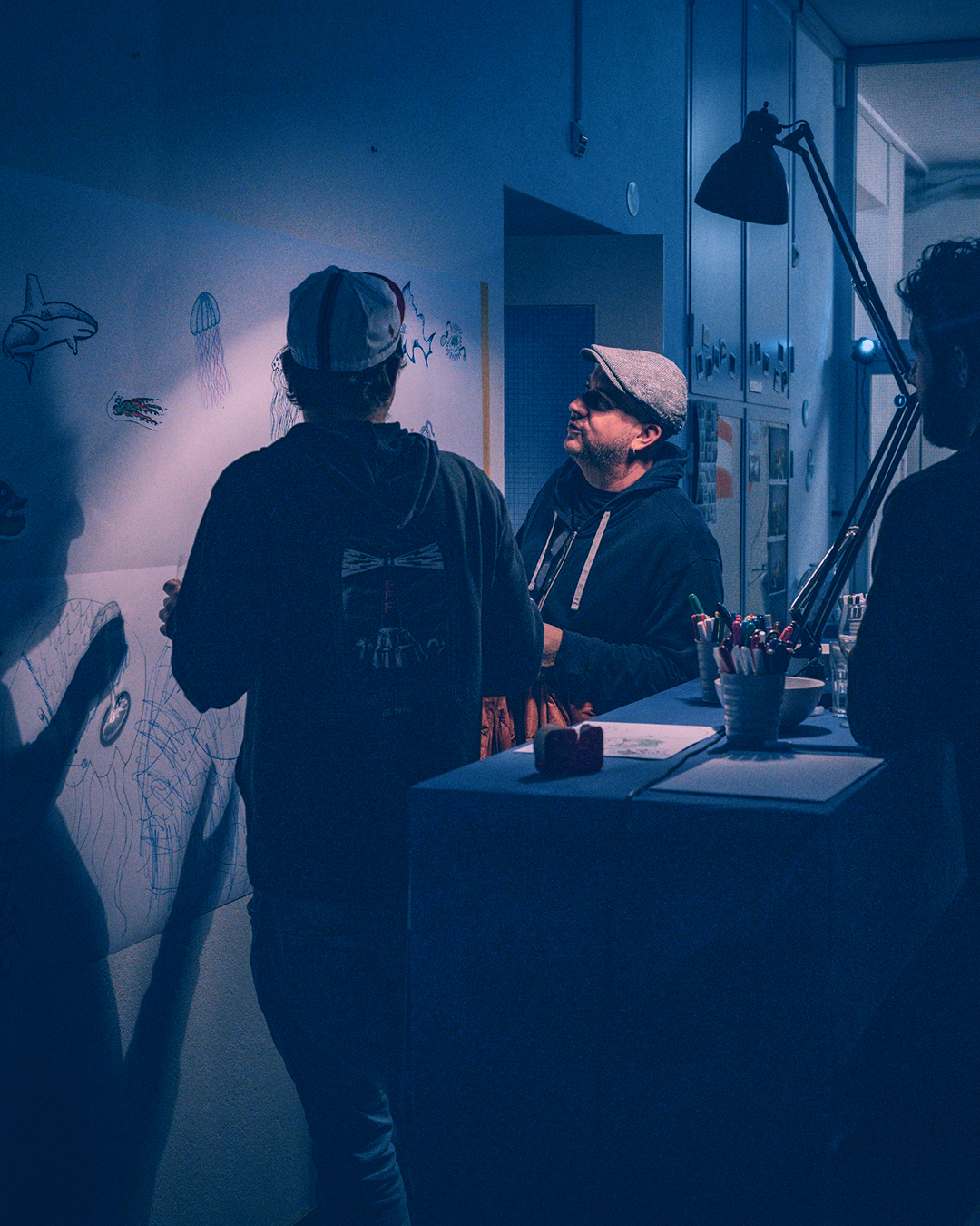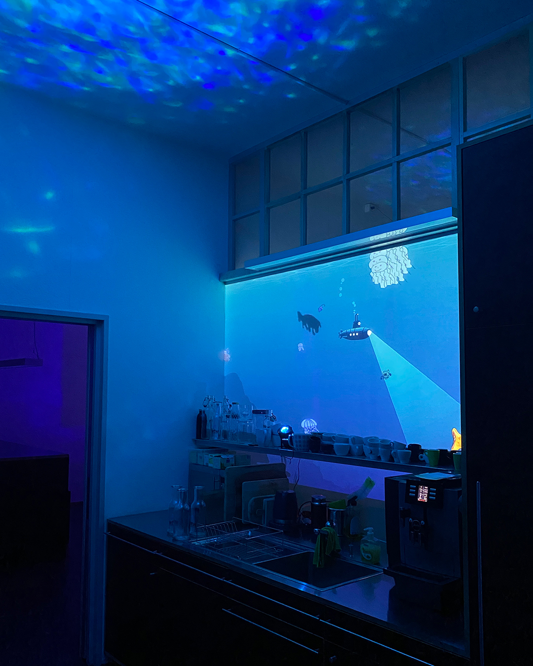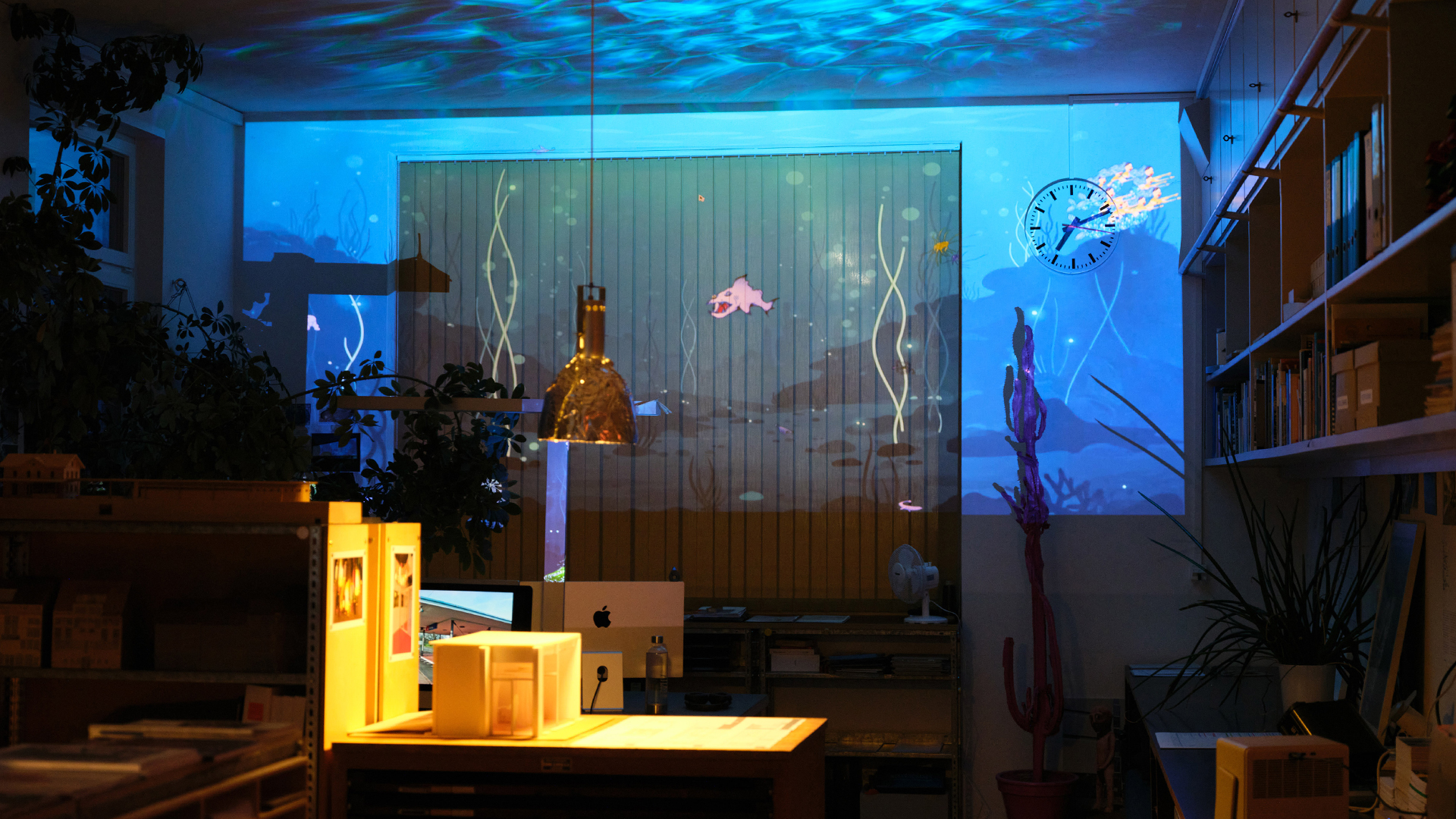 Nebst dem «Making of» des diesjährigen Kulturnacht-Plakats, gab es unter anderem auch Architekturprojekte der Lauber Maier Architekten AG zu bestaunen. Und wer ganz aufmerksam war, sah zwischen Luftblasen, Seetang und Korallengewächsen seine selbstgezeichneten Unterwasserkreaturen vorbeischwimmen.